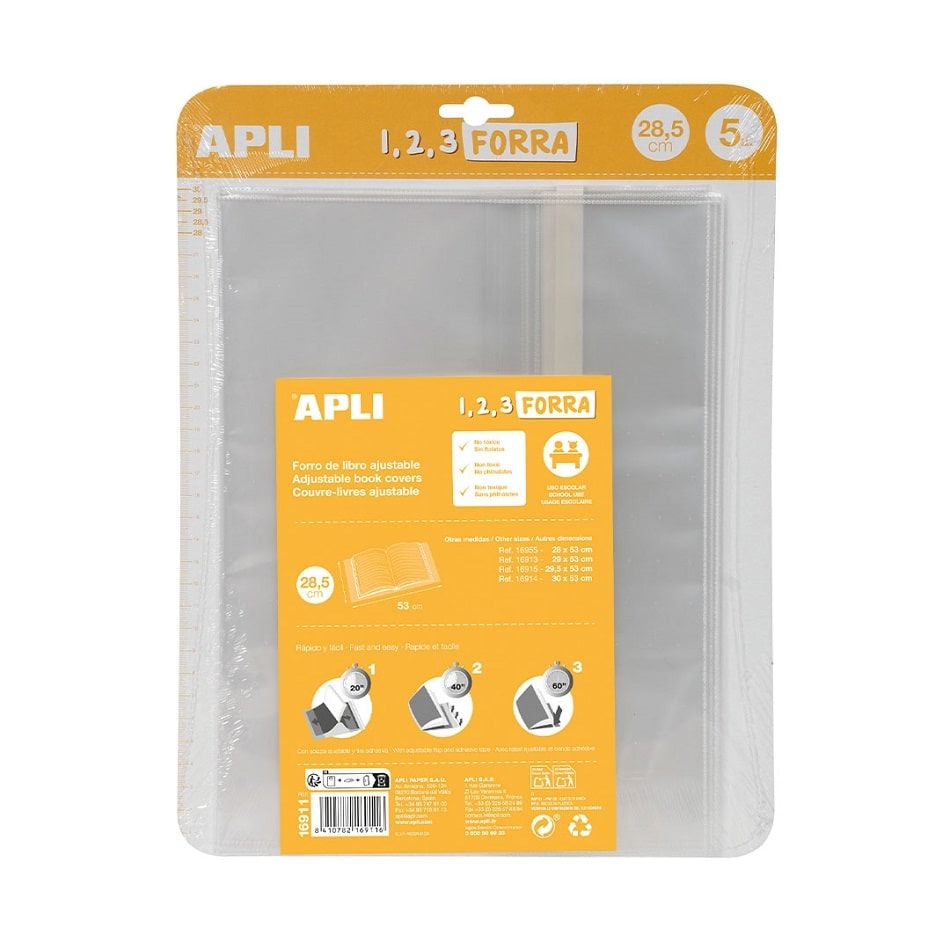 Cada saco contém 5 capas. A maneira mais fácil de cobrir livros, cadernos e pastas, pois adapta-se à largura sem ter de cortar ou usar fita adesiva.