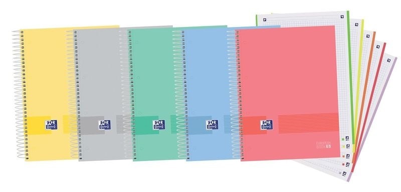 EUROPEANBOOK 5 OXFORD&YOU Capa de cartão rígida com acabamento mate - 120 folhas 5 cores de margem para organizar 5 disciplinas por caderno. Compatível com a app Scribzee.