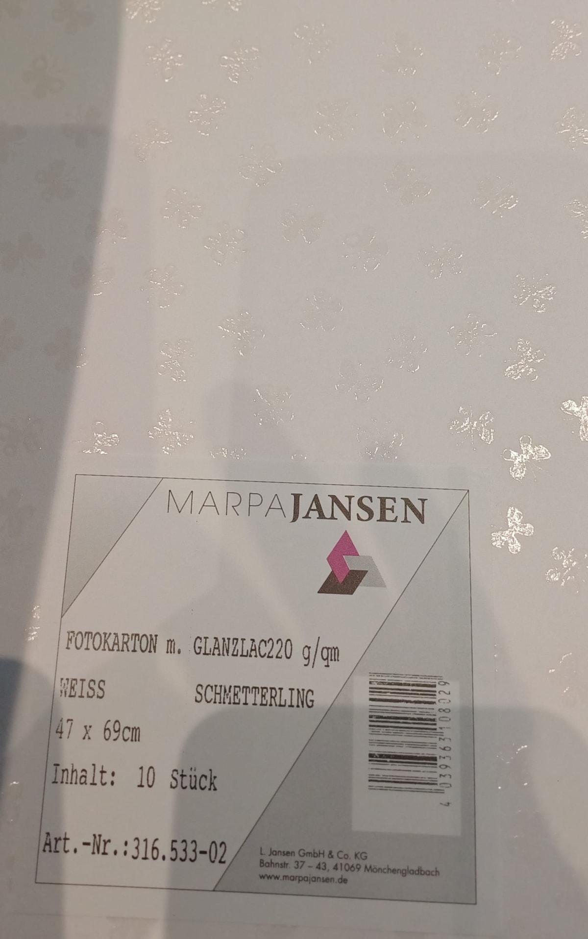 Cartolina Fantasia 47x69cm 220g. 31653302, borboletas, Bco.