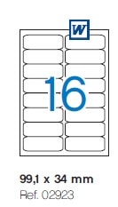 Etiquetas permanentes com qualidade fotográfica. Folhas A4 com 16 etiquetas 99,1X34mm.