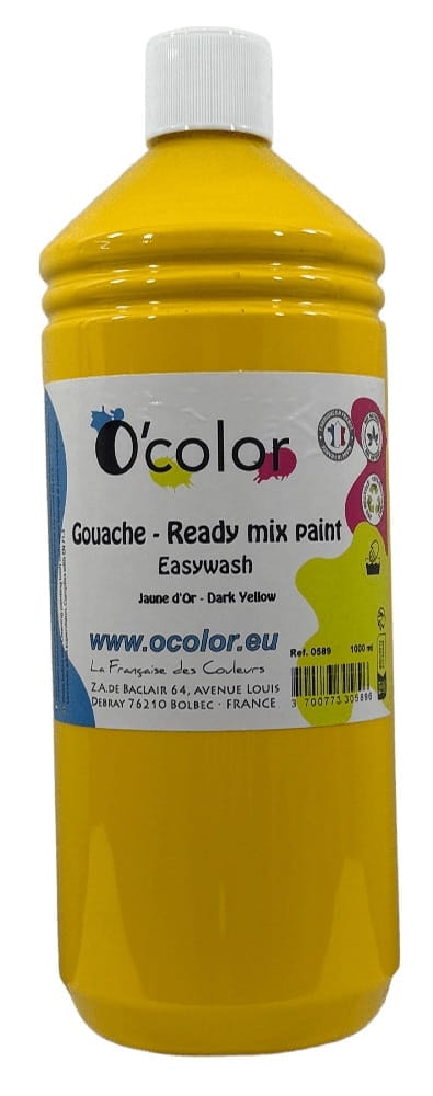 Guache liquido O´color 1000ml, lavável, Amarelo dourado-0589