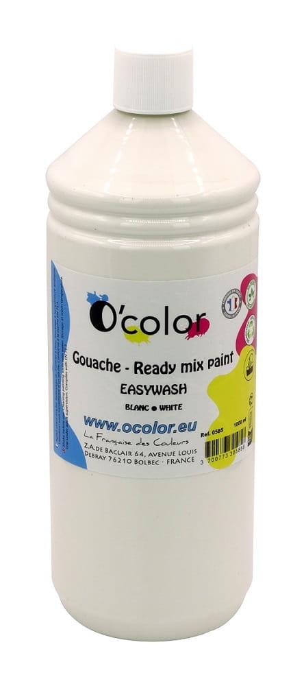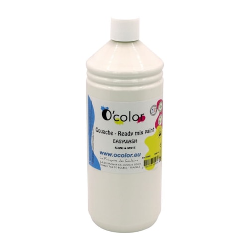 Guache liquido O´color 1000ml, lavável, Branco-0585