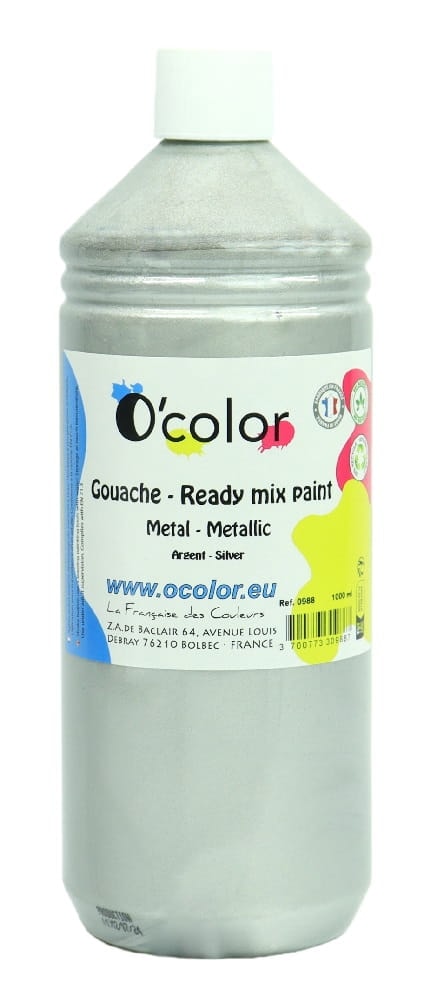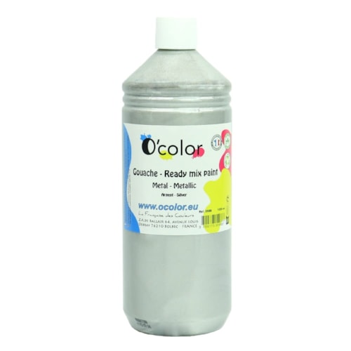 Guache liquido O´color 1000ml, metálizado, Prata -0988