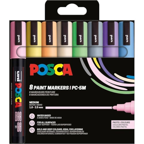 Marcador Uni Posca PC-5M, Cx. cartão, Pack c/ 8 cores pastel
