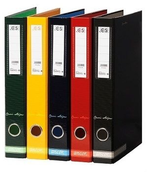 Pasta de arquivo em cartão forrado a papel impresso, com plastificação brilhante. Com porta-etiqueta, óculo e sistema de duas argolas (lombada estreita) Disponível em 10 cores. Medidas 320X255X47mm (lomb. estreita).