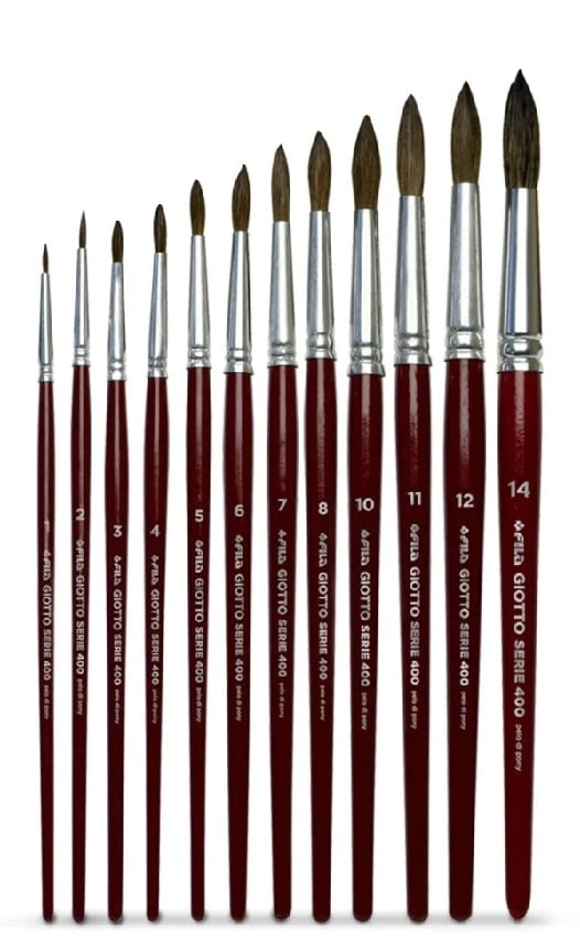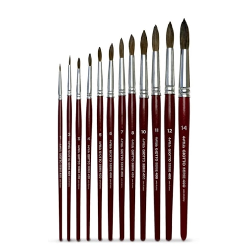 Qualquer que seja a sua técnica, linha desejada ou efeito, Giotto tem o que precisa. Disponível em 12 tamanhos, desde linhas ultra finas a linhas mais grossas, a série 400 tem ponta redonda com cerda natural de pónei ideal aguarelas e guaches.