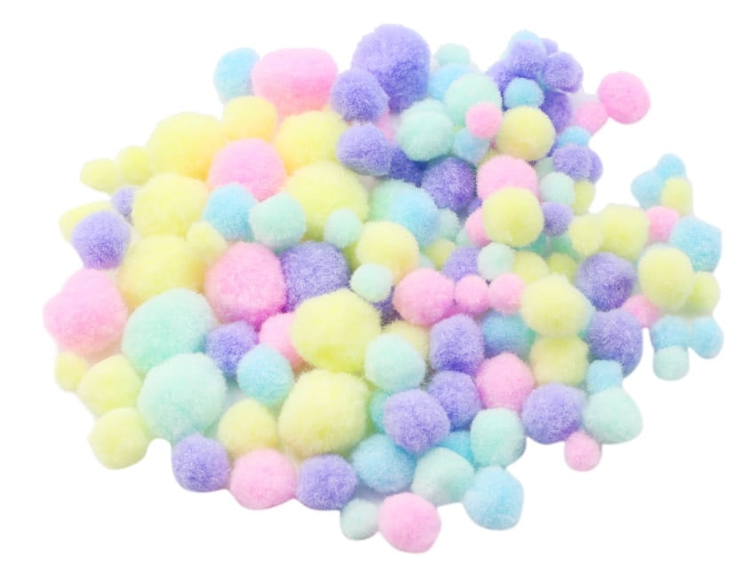 Pompons v/ tamanhos, 2178, saco c/300 cores pastel sort.