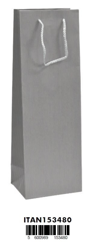 Saco papel Kraft 210g p/Garrafas c/cordão, 12X9X36 cm, Prata