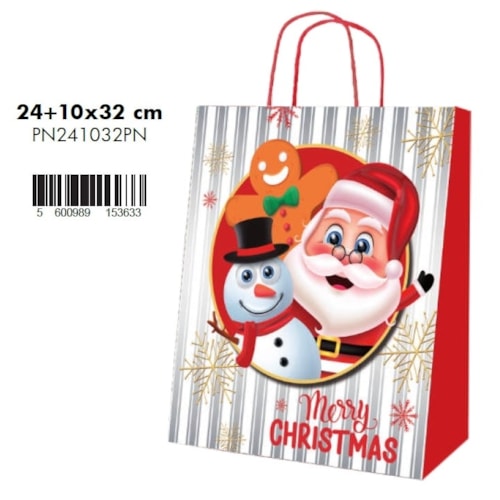 Sacos Asa Retorcida, 24+10X32, Natal, Pai Natal, 25Uni.