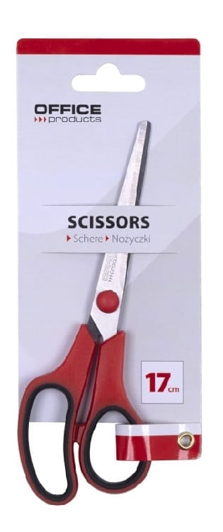 Tesoura de escritório caracterizada por um formato ergonómico e um cabo macio universal e precisa